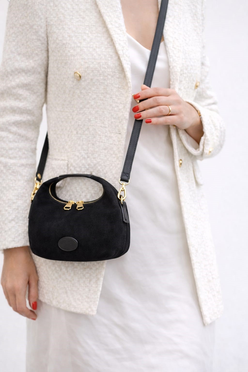 %100 Hakiki deri süetten üretilmiş,yumuşak dokusu ve modern formu ile öne çıkan özel bir tasarımdır.Doğal ve açık tonlu altın sarısı metal aksesuarları,çantaya sade zarif bir görünüm kazandırır.